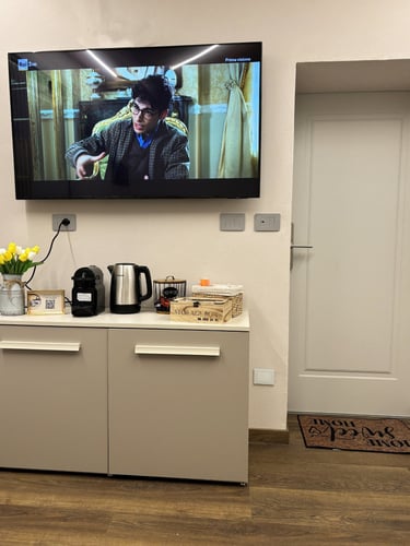 Il bagno è ben fornito, con doccia, bidet, WC, asciugacapelli e servizi igienici aggiuntivi, per garantirti il massimo comfort. La struttura è dotata di riscaldamento autonomo e Wi-Fi gratuito in tutta la proprietà, così potrai rimanere connesso durante il tuo soggiorno. Per il tuo intrattenimento, troverai una Smart TV da 32" in camera e una Smart TV da 55" nel soggiorno.
