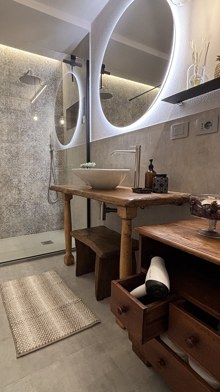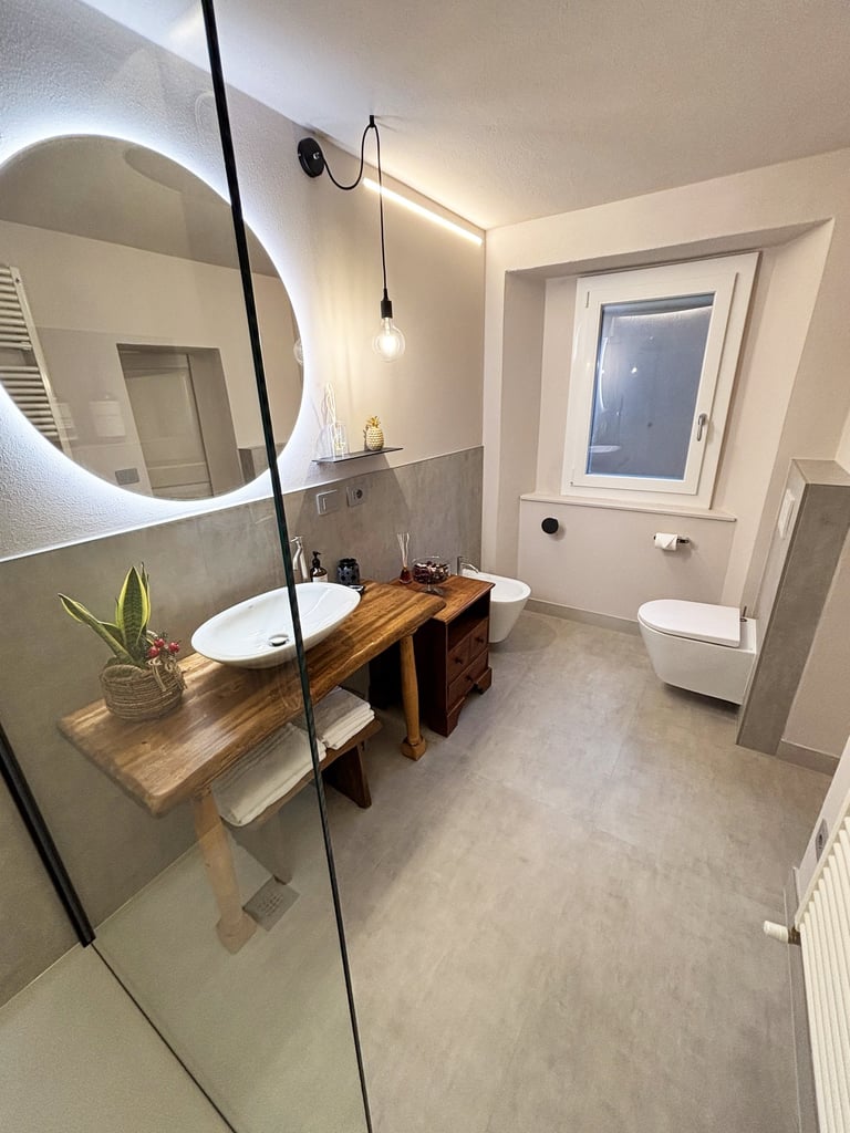 Bagno: con doccia Walk-in XXL , bidet, WC, asciugacapelli e servizi igienici aggiuntivi.