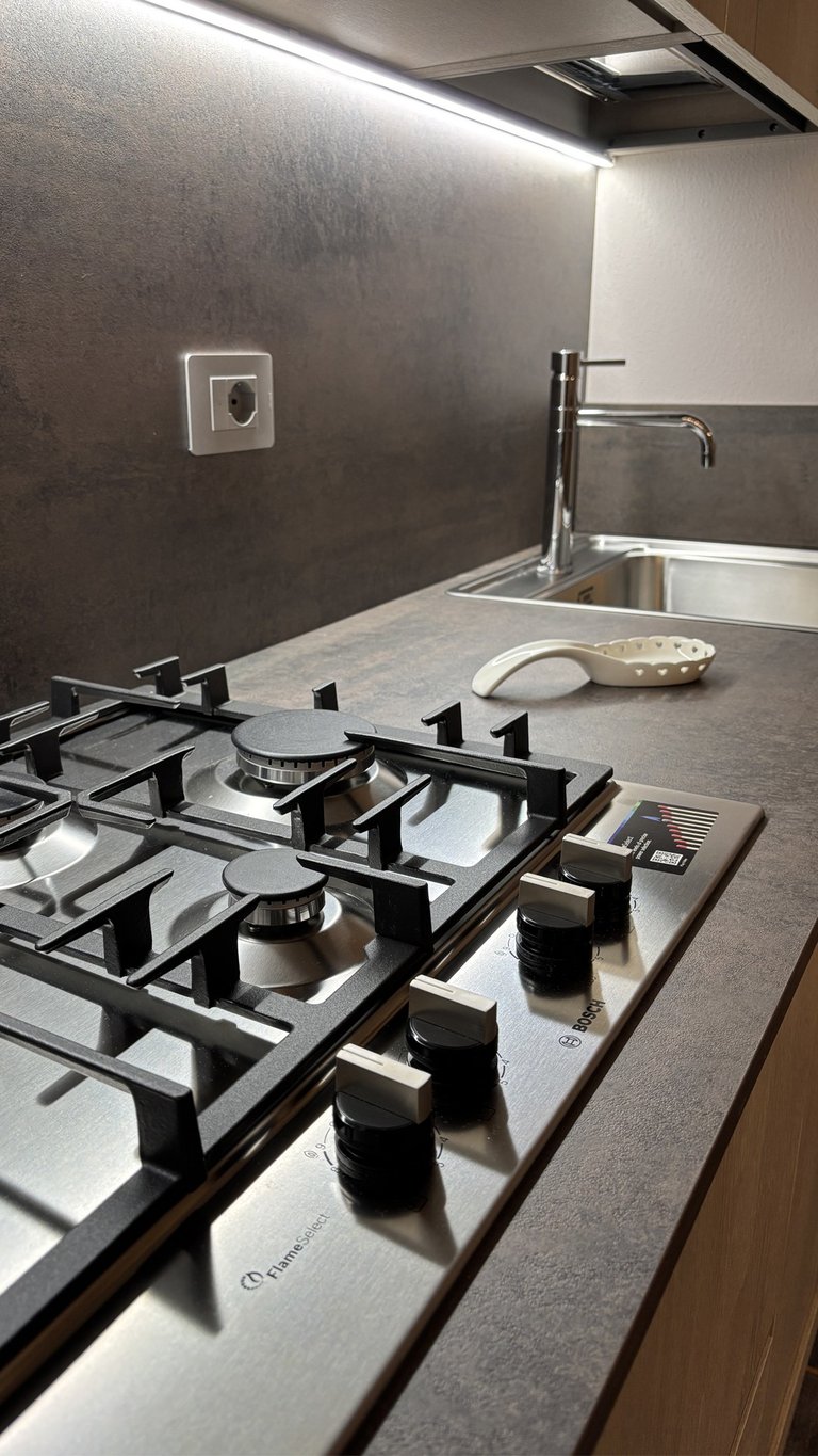 Cucina attrezzata: completa di frigorifero, piano cottura a gas, macchina del caffè Nespresso, bollitore elettrico e tutti gli utensili necessari per preparare i tuoi pasti.